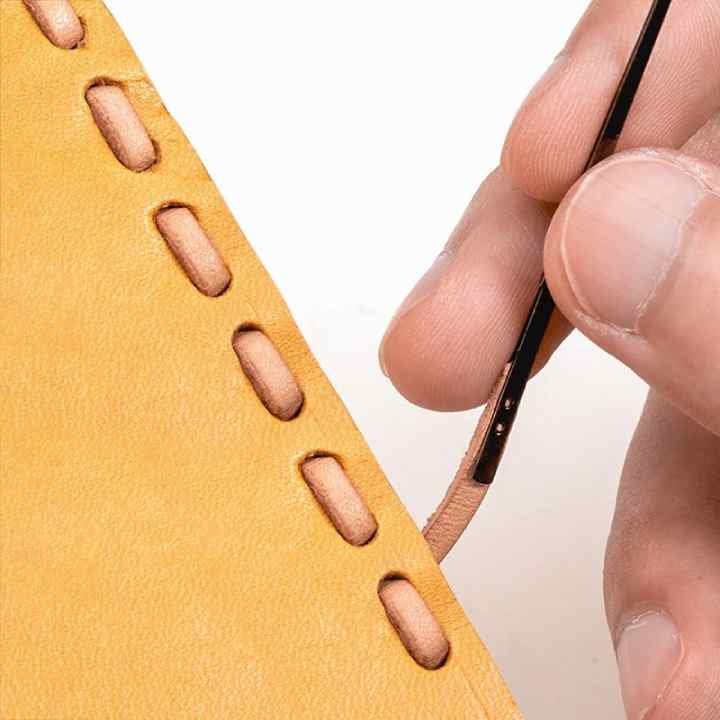 Le bout fin d’à peine 1,7 mm vous permet de glisser facilement dans les trous déjà percés, même dans du cuir épais.